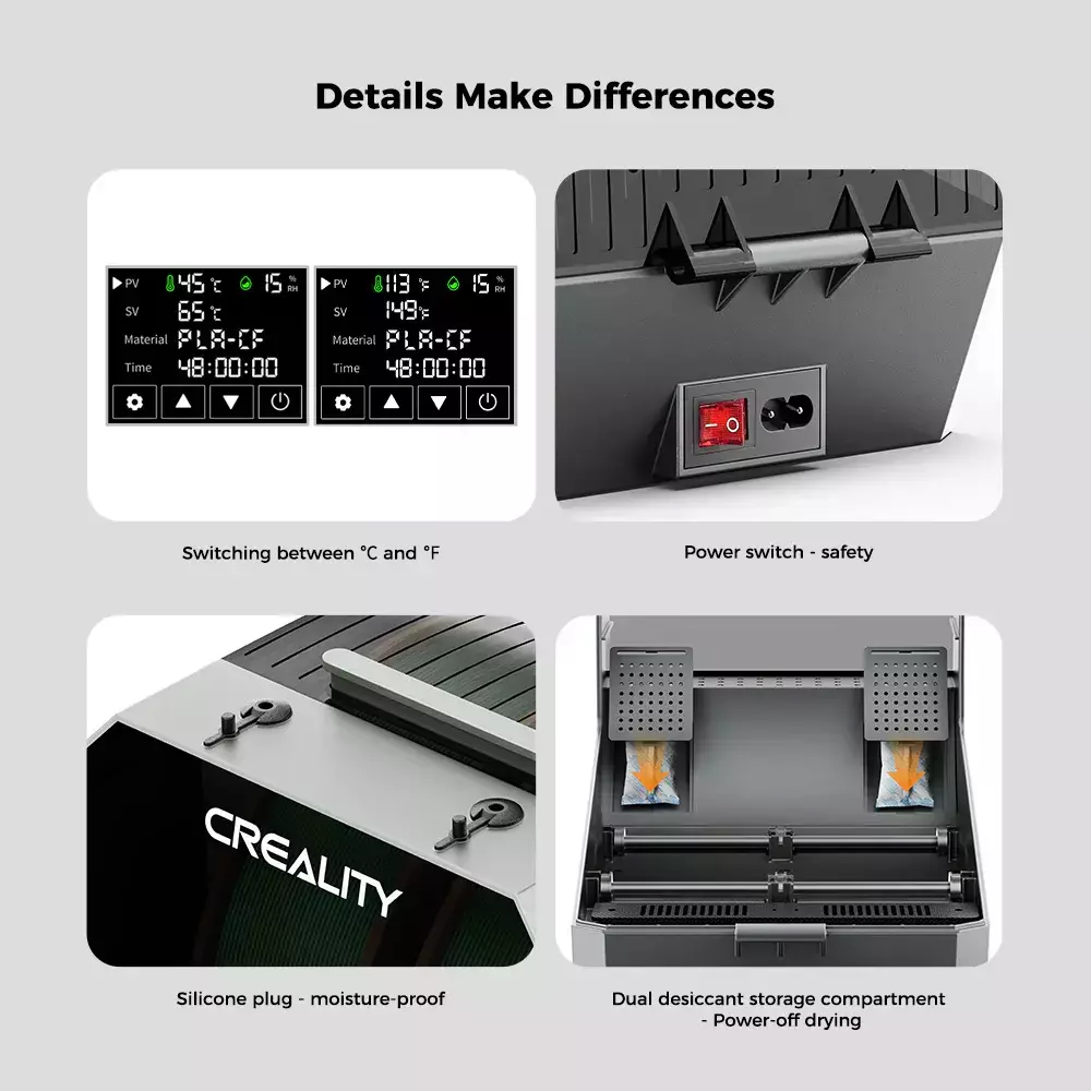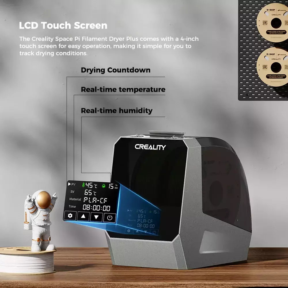 ✨El Space Pi Plus, secador oficial de Creality, está diseñado para eliminar la humedad del filamento durante el proceso de impresión, lo que se traduce en piezas más precisas y libres de defectos.